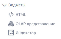 В группу “Виджеты” входят OLAP-представление для отображения информации в табличном виде и HTML-виджет для отображения информации в уникальном формате с помощью технологий HTML, CSS и Javascript: