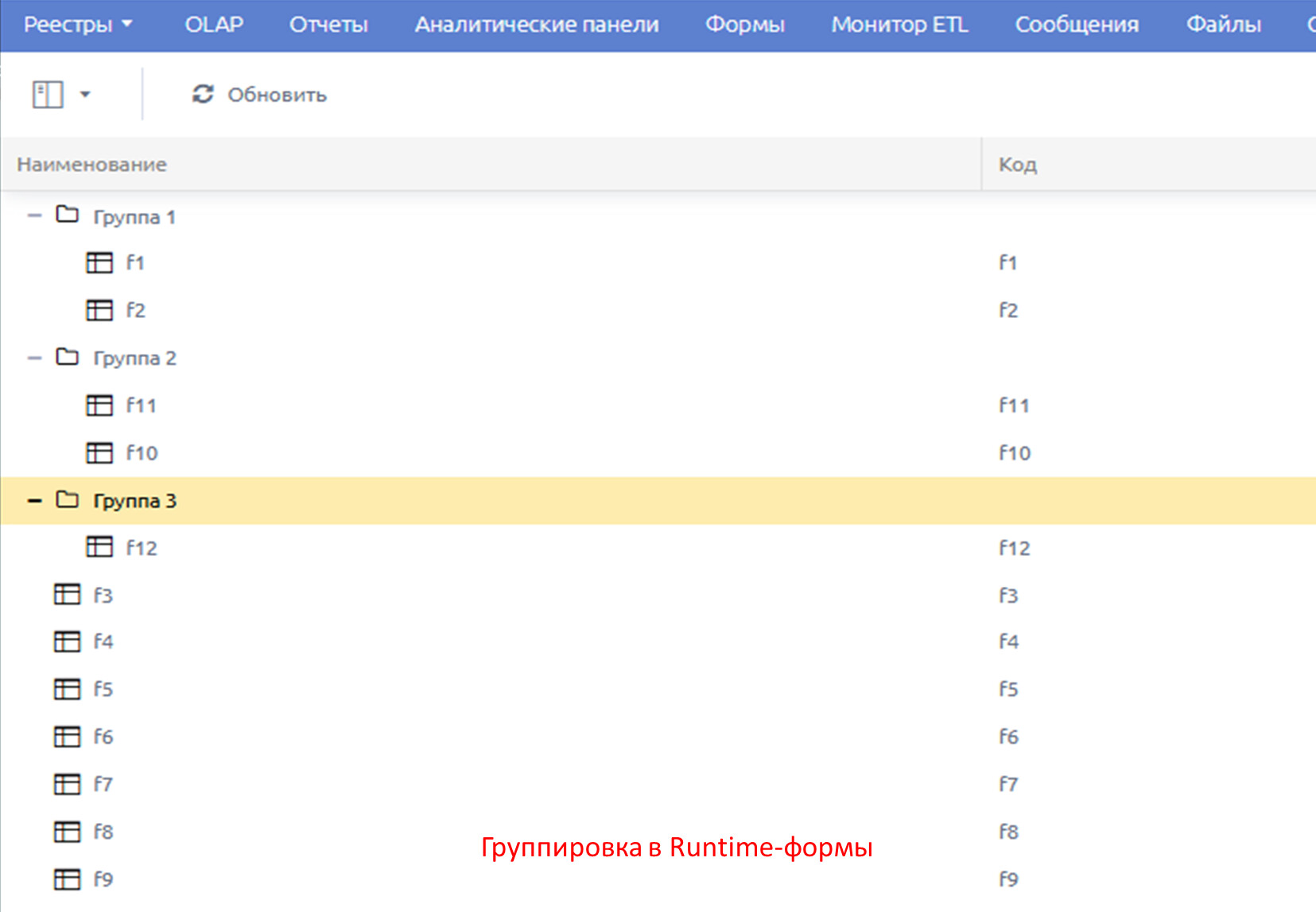 Раньше системный реестр форм (DT), где администраторы настраивают структуру, и пользовательский реестр (RT), из которого пользователи открывают формы, работали по-разному. В первом случае администраторы могли создавать группы (папки, каталоги) и задавать порядок отображения форм, а во-втором - формы отображались в виде плоского списка, без какой-либо организации. Это создавало неудобства и усложняло навигацию, особенно при большом количестве форм.